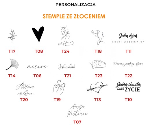 - możliwy do wykonania stempel w złotym kolorze, z możliwością skorzystania z gotowych wzorów
