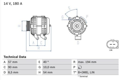 ALTERNATOR (14V, 180A) PASUJE DO: VOLVO S60 II, V60 I, XC60 I 2.5 04.14-12.18