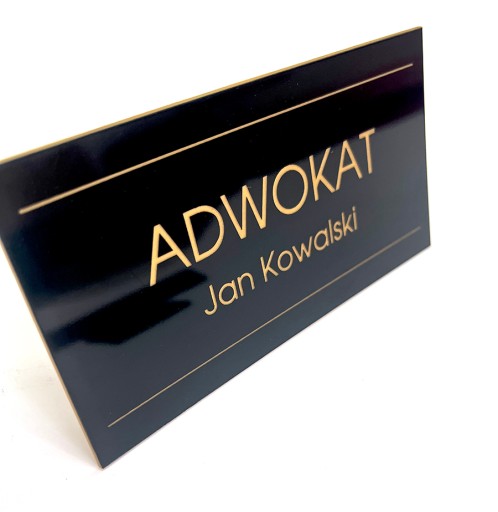 Tabliczka grawerowana - czarna połysk z złotym grawerem, to elegancki i wyjątkowy element, który może być używany w różnych kontekstach. Wyobraź sobie tabliczkę o wymiarach dostosowanych do Twoich potrzeb, na przykład na drzwiach biura, gablotce z nagrodami, w eleganckim sklepie lub na specjalnym prezencie.