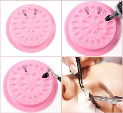 ⭐Podstawka na klej z wyżłobionymi kropelkami ułatwiającymi dozowanie kleju do rzęs lub pigmentu.