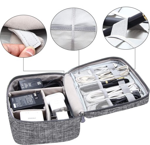 Przenośny organizer jest doskonałym dodatkiem do jasnego układu małej elektroniki. Organizer zapewni więcej miejsca do przechowywania i będziesz miał wszystkie małe urządzenia elektroniczne razem poukładane. Umieść wszystkie elementy elektroniczne w tym łatwym w użyciu organizerze i zachowaj bezpieczeństwo.