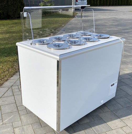 Zapewniamy zaoferowanie wysokiej jakości i niezawodności urządzenia. Nowoczesne technologie pozwoliły nam na zastosowanie kompresorów o bardzo niskim zużyciu energii oraz niskie koszty utrzymania. Uniwersalna szerokość wynosząca 694 mm pozwala dopasować nam urządzenie do większości przyczep gastronomicznych i lokali usługowych.