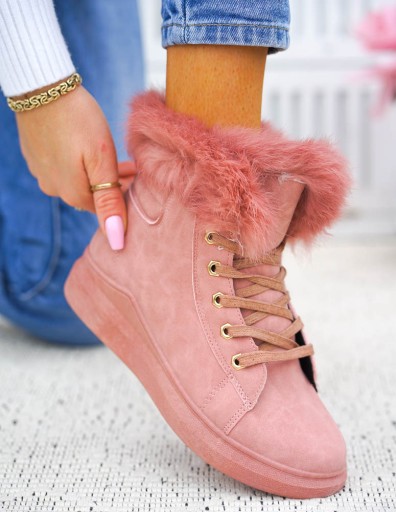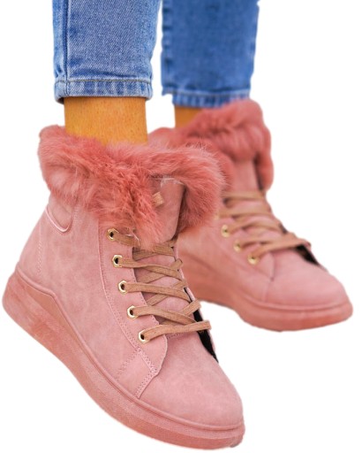 - ❤ Modne i tanie buty on-line❤ Ocieplane trapery na zimę ❤Ciepłe botki z futerkiem❤Różowe Trapery damskieRóżowe, efektowne trapery damskie. Buty w całości wykonane są z eco skóry. Ocieplane grubym, miłym futerkiemGruba, antypoślizgowa podeszwa, zapewni komfort użytkowania. Niebanalny look obuwiu nadaje wystający puszek.Traperki są sznurowane.Lekkie, ultra kobiece botki, które świetnie sprawdzą się zarówno do codziennego użytku jak również na specjalne okazje