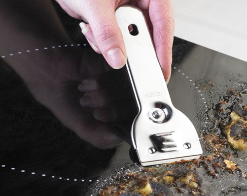 Skrobak gwarantuje skuteczne i bezpieczne czyszczenie płyt indukcyjnych, kuchennych kuchenek szklanych oraz szyb okien.