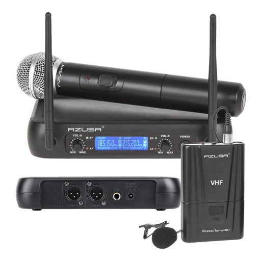 Mikrofon bezprzewodowy do ręki i mikrofon na klip 2 kanały VHF