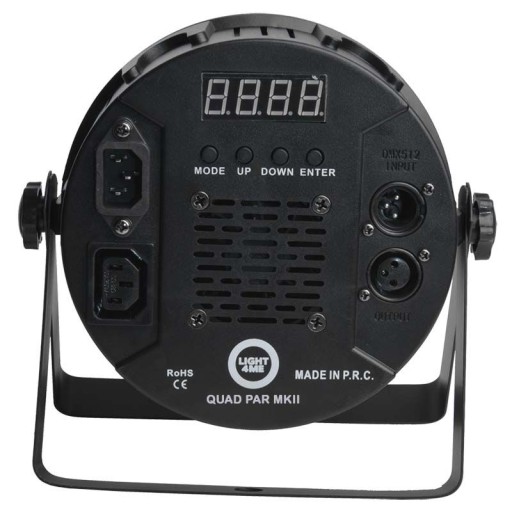 Light4Me Quad Par to ✅ solidna konstrukcja i wysoka jakość wykonania. W tylnej części obudowy led-para oprócz panelu sterowania umieszczono gniazda zasilające IEC in/out umożliwiające podłączenie oraz przesłanie zasilania do kolejnych urządzeń, oraz gniazda DMX in/out, które pozwalają na sterowanie urządzeniem i przesłanie sygnału ze sterownika DMX. Wbudowane wentylatory chłodzące chronią podzespoły wewnętrzne przed przegrzaniem, a zarazem oferują cichą pracę. Duża moc, solidna jakość wykonania oraz bezkonkurencyjnie niska cena tworzą z ✅ Light4Me Quad PAR świetną propozycję dla zespołów, DJ-ów oraz firm eventowych ceniących sobie długą i bezawaryjną pracę.