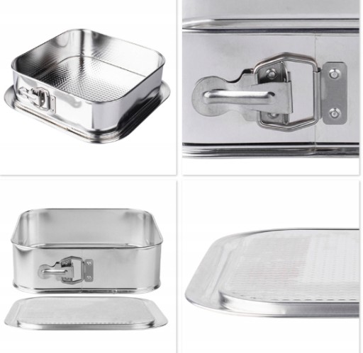 Kwadratowa blacha o boku 24 cm, pomoże w przygotowaniu pysznych domowych wypieków. Idealna do przygotowania puszystego biszkoptu. Tortownica posiada odpinany bok, który umożliwia proste wyciągnięcie gotowego ciasta. Wykonanie ze stali zapewnia odporność na wysokie temperatury, do 220 stopni Celsjusza