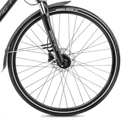 Model wyposażony jest w bagażnik, błotniki, mocne oświetlenie przód/tył, stabilną stopkę i osłonę na łańcuch, dzięki czemu rower jest gotowy na wielodniowe wyprawy, jak i dojazdy do pracy nawet przy gorszej pogodzie.