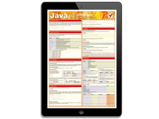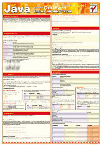 Java przydaje się do wszystkiego. Jej legendarna elastyczność zyskuje rzesze zwolenników, z których żaden nie może obyć się bez tablic informatycznych, zawierających wszystkie najważniejsze elementy i konstrukcje tego języka. Wśród nich wymienić można chociażby szczegółowo rozpisane typy danych, operatory i instrukcje, a także informacje dotyczące budowy i funkcji klas oraz obiektów czy tworzenia i wykorzystywania interfejsów. Ponadto znajdziesz tu wskazówki dotyczące obsługi wyjątków czy współpracy z systemem plików.