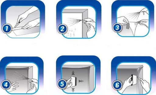 - Szybę oraz folię spryskaj wodą, umożliwi to wygodne przesuwanie folii po powierzchni szyby.