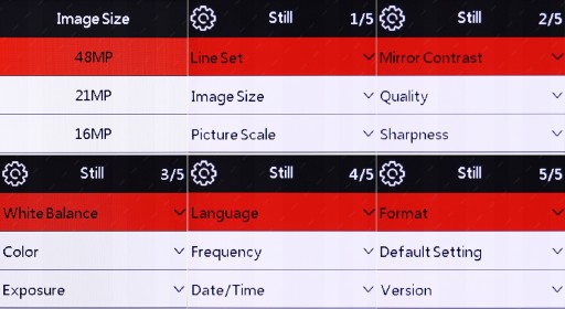 - rozdzielczość zdjęć (MJPEG): 48MP (8000x6000 pixeli), 21MP (5200x3900 pixeli), 16MP (4608x3456 pixeli)