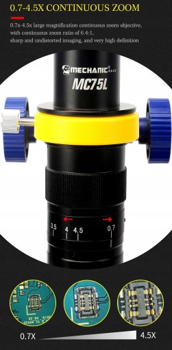 CYFROWY MIKROSKOP MECHANIC MC75L-B3 Z POWIĘKSZENIEM 7-45x (20x~280x)