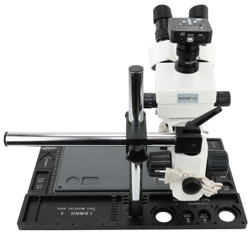 - mikroskop stereoskopowy trinokularowy 7-45x z regulowanym góra-dół oraz lewo-prawo uchwytem,