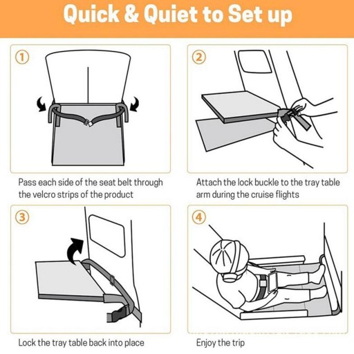 Łatwy w instalacji: regulowane pasy mocujące, bok łóżeczka podróżnego dla malucha mocuje się do pasa bezpieczeństwa, a drugi wisi na tacy przedniego siedzenia, podobnie jak hamak, łatwy w montażu i demontażu. Pasuje do większości siedzeń samolotowych z tacami przednich siedzeń.