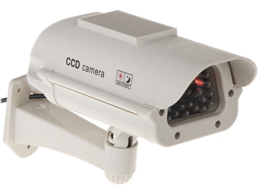 Atrapa kamery to wysokiej jakości imitacja prawdziwej kamery monitoringu CCTV. Migająca czerwona dioda LED sprawia wrażenie monitoringu całodobowego. Dzięki wymiarom tradycyjnej kamery kompaktowej oraz imitacji wbudowanych 28 diod podczerwieni, jest nie do rozpoznania dla jakiejkolwiek osoby postronnej.