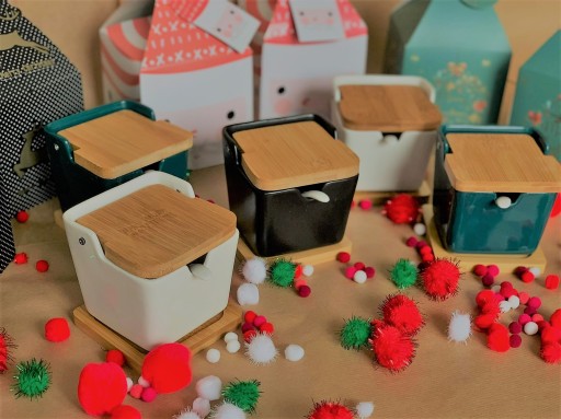 Pojemnik został wykonany z ceramiki oraz z naturalnego drewna bambusowego. ✅