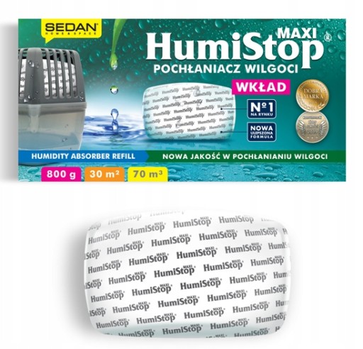 Najwyższej jakości wkład zapasowy do pochłaniacza wilgoci "HUMISTOP MAXI" Dzięki niemu pochłaniacz kontroluje i samodzielnie reguluje nadmiar wilgoci w pomieszczeniach.