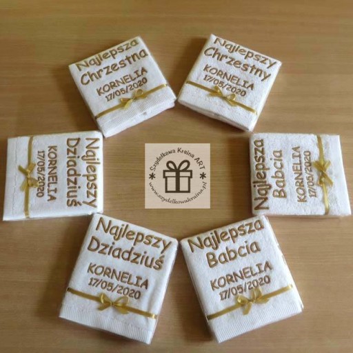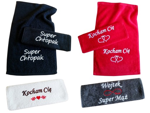 - komplety ręczników z haftem (np. ręczniki w koszu)