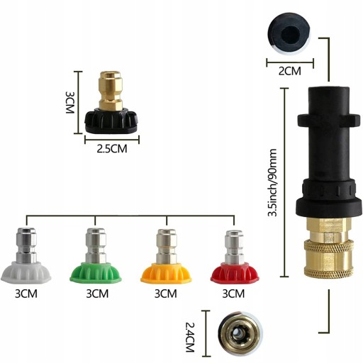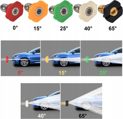 🚗 5 Końcówki dysz mają różne kąty (0, 15, 25, 40, 65). Możesz użyć różnych dysz w zależności od potrzeb.