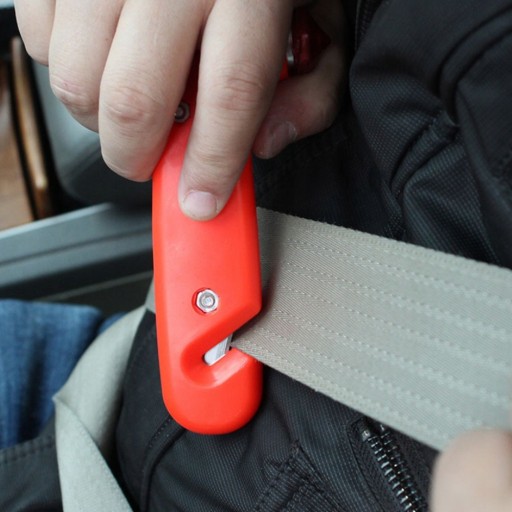 Nóż tnący: Osadzone ostrze w kształcie haka może odciąć pas bezpieczeństwa, aby uciec w sytuacji awaryjnej.