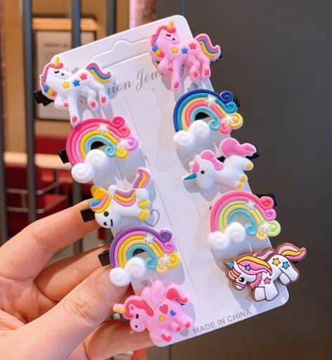 SPINKI do włosów JEDNOROŻEC klamry ozdoby zestaw 10 sztuk PREZENT