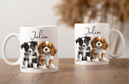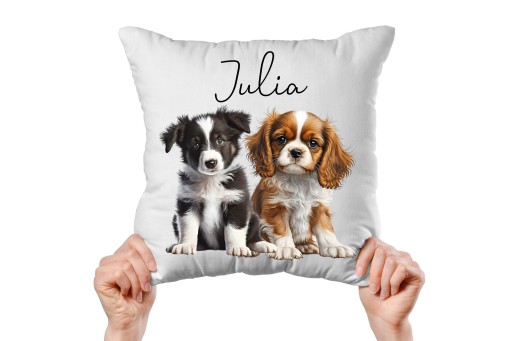 ZESTAW Kubek + Poduszka z pieskami dwa psy + IMIĘ