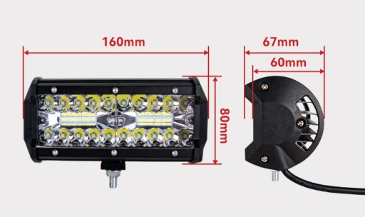 Jasny reflektor LED do oświetlenia dodatkowego. Środkowe rzędy diod są zamontowane we wspólnym płaskim odbłyśniku i tworzą szerokie wiązki światła roboczego. Pozostałe diody LED są zamontowane w oddzielnych odbłyśnikach i tworzą bardziej skupione wiązki światła dalekiego zasięgu. Reflektor działa w trybie pojedynczego światła, bez przełączania między światłami roboczymi i drogowymi.