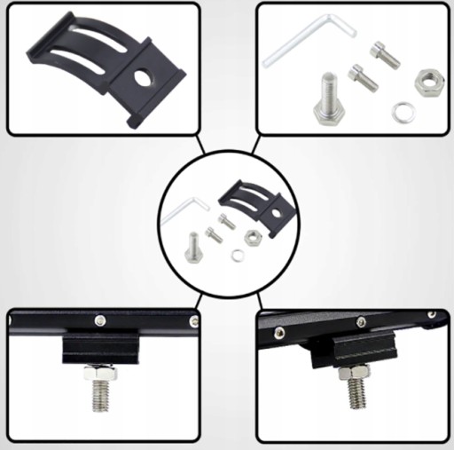 Metalowa obudowa - wytrzymała i lekka. Poliwęglanowe szkło - chroni reflektor przed uszkodzeniami mechanicznymi. Reflektor jest uniwersalny, znajduje szerokie zastosowanie w różnych typach samochodów osobowych i ciężarowych. W zestawie zakrzywione uchwyty na belkę - możliwość regulacji kąta nachylenia reflektora w górę i w dół oraz przesuwania uchwytów na całej długości belki.