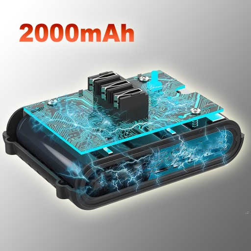 - Trwałe i szybkie ładowanie dzięki 2 akumulatorom o dużej pojemności 2000mAh , jeden w pełni naładowany na 35-45 minut użytkowania ( 2 na 70 minut - 90 minut ). Bateria jest nowoczesna do wymiany i bardzo prosta w działaniu .