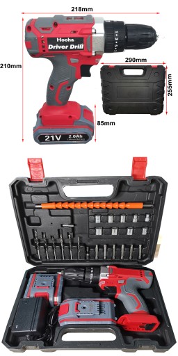 Электрическая дрель и отвертка 21 В, 2 аккумулятора 50 Нм