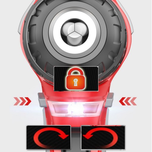 - Bezstopniowa kontrola prędkości i Inteligentny System Hamowania Awaryjnego , prędkość silnika zmienia się w zależności od siły nacisku, zatrzymuje się po puszczeniu.