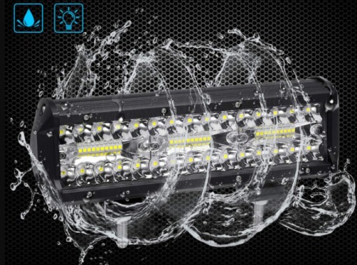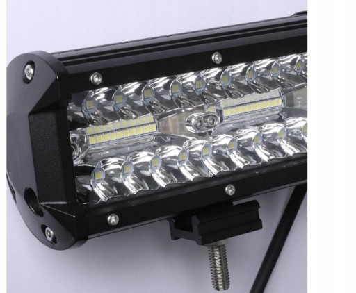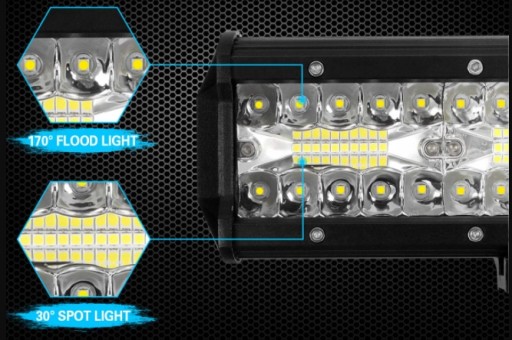 Jasny reflektor LED do oświetlenia dodatkowego. Środkowe rzędy diod są zamontowane we wspólnym płaskim odbłyśniku i tworzą szerokie wiązki światła roboczego. Pozostałe diody LED są zamontowane w oddzielnych odbłyśnikach i tworzą bardziej skupione wiązki światła dalekiego zasięgu. Reflektor działa w trybie pojedynczego światła, bez przełączania między światłami roboczymi i drogowymi.