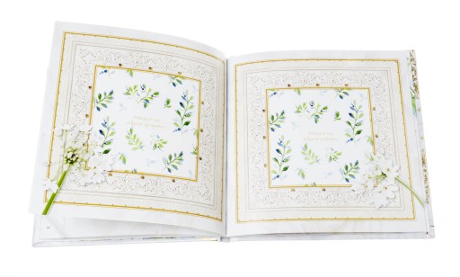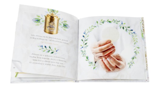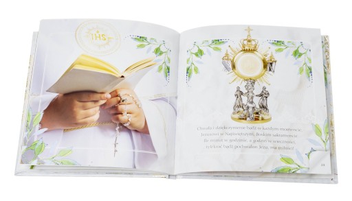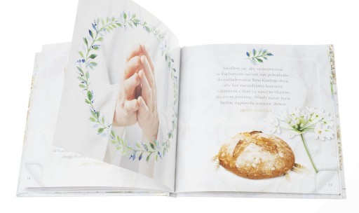 Piękna elegancka pamiątkowa książka w formie albumu na Pierwszą Komunię Świętą. Album jest gustownym prezentem na Pierwszą Komunię Świętą. Pełen jest kolorowych stron i miejsca na uzupełnienie najważniejszych informacji. Możemy wkleić do niego również własne fotografie.