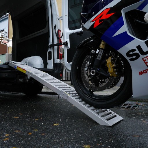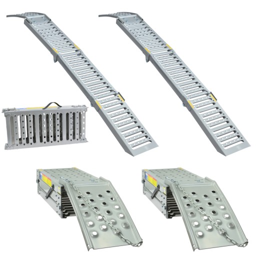 Zestaw ramp GEKO, zawiera dwie składane wytrzymałe rampy do samochodów lub motocykli o szerokości opon do 225 mm. Rampy mają maksymalną ładowność 2,2 tony lub 350 kg każda z osobna jeśli jest używana jako rampa do załadunku. Idealne do użytku z przyczepami, burtami i innymi pojazdami. Zwiększona przyczepność i bezpieczeństwo dzięki perforowanej powierzchni. Cechy produktu Mogą być używane w stanie rozłożonym i złożonym Ładowność w stanie rozłożonym: 250 kg na sztukę lub 500 kg na pare Ładowność w stanie złożonym: 1100 kg na sztukę lub 2200 kg na pare Długość w stanie rozłożonym: 1830 mm