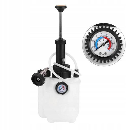 Zestaw do odpowietrzania i wymiany płynu hamulcowego. Urządzenie przeznaczone do ciśnieniowej wymiany płynu hamulcowego i odpowietrzania całego układu hamulcowego. Pozwala w łatwy i szybki sposób wymienić płyn i odpowietrzyć układ hamulcowy przez jedną osobę. Charakterystyka produktu: szybkie i łatwe odpowietrzanie oraz wymiana płynu hamulcowego wymianę można wykonać samemu, bez pomocy drugiej osoby uniwersalny adapter 42mm pasuje do większości europejskich aut duży zbiornik o pojemności 2,5l mały zbiornik o pojemności 1l standardowa szybkozłączka pneumatyczna obsługuje układy hamulcowe wyposażone w system ABS oraz ESP ciśnienie robocze: 2 Bary / 30 psi