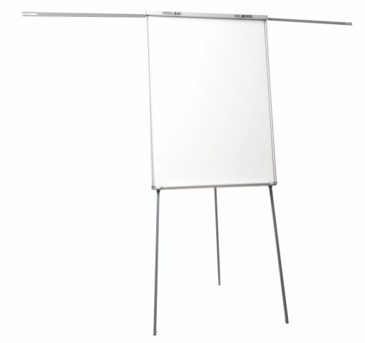 flipchart z lakierowaną powierzchnią metalową powierzchnia robocza magnetyczna i suchościeralna rama aluminiowa anodowana z narożnikami z tworzywa sztucznego 2 składane na boki ramiona magnetyczne system szybkiego mocowania umożliwiający przymocowanie dowolnych bloków papierowych z perforacją lub bez regulacja wysokości od 100 do 180 cm półka GWARANCJA: 24 miesiące