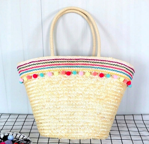 - torebka posiada urocze pomponiki, które dodają wakacyjnego klimatu