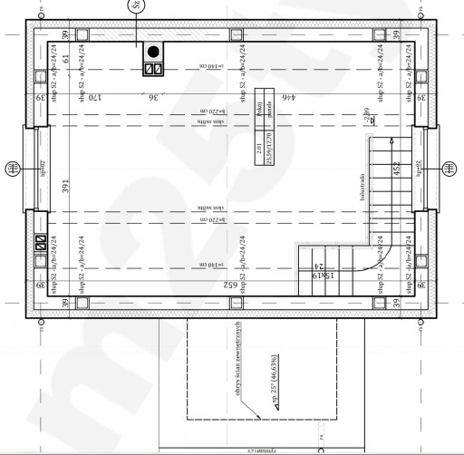 rzut parteru, rzut fundamentów, rzut dachu, przekrój pionowy, elewacje, rzut więźby dachowej, rzut stropu, rzut poddasza