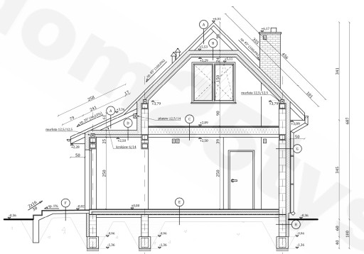 1. Projekt Budynku Murowanego do 70m2 z poddaszem wersja PDF (same rzuty i przekroje z opisami technicznymi) z filmów YouTube "dom25tys"