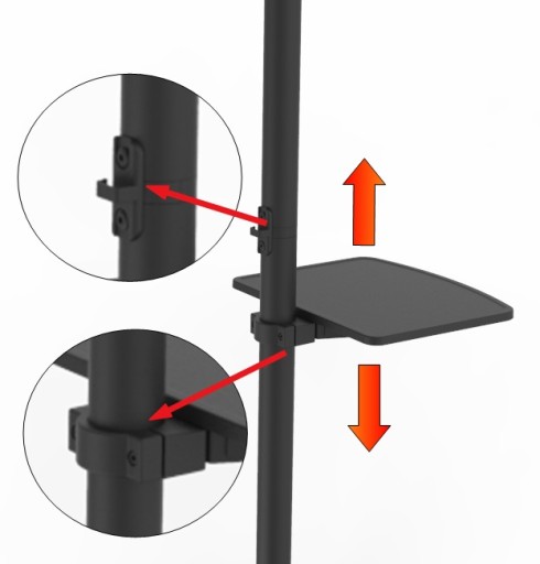 - Regulacja wysokości TV odbywa się na dwóch pionowych łapach i jest możliwa tylko gdy otwory montażowe VESA w Telewizorze mają w pionie rozstawi mniejszy niż 400 mm (np. 200 lub czy 300mm)