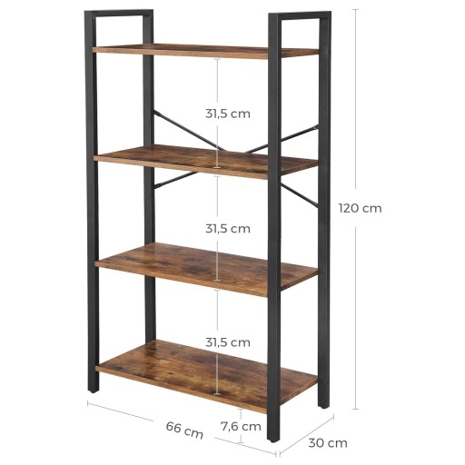 4 PÓŁKI, RUSTYKALNY BRĄZ, W STYLU LOFT