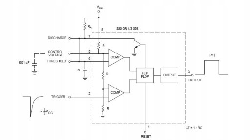 Jest to układ astabilny/monostabilny, który pełni funkcję zegara. Może być wykorzystywany w różnych aplikacjach, które wymagają generacji sygnału o stałej częstotliwości.