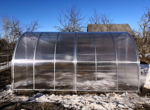 Trwała konstrukcja - Łuki są głównym elementem nośnym szklarni. Aby zapewnić maksymalną sztywność, powierzchnia czołowa jest spawana całkowicie, a łuki są wygięte w całości, bez węzłów łączenia. Liczba łuków w szklarni jest zwiększona (odległość między łukami wynosi 67 cm) i zapewnia bardziej równomierne obciążenie śniegiem na poliwęglan komorowy, co oznacza że szklarnia pokryta poliwęglanem doskonale sprawdzi się nawet w najbardziej śnieżną zimę.