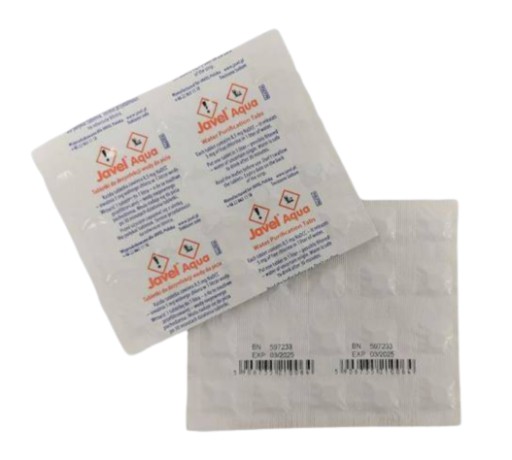 Rozpuszczalne tabletki chlorowe do dezynfekcji wody pitnej o nieznanym pochodzeniu. Eliminują mikroorganizmy wywołujące zaburzenia żołądkowo-jelitowe i inne groźne choroby spowodowane spożyciem wody z niesprawdzonego źródła.