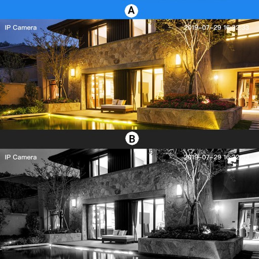2) Białe diody - podczerwień, które oświetlają kadr nocą wtedy obraz jest czarno biały