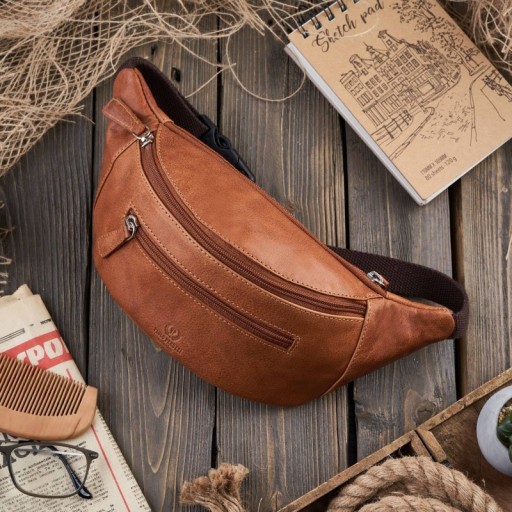 STYLOWA SASZETKA ZE SKÓRY NERKA NA PAS BRĄZOWA KONIAKOWA