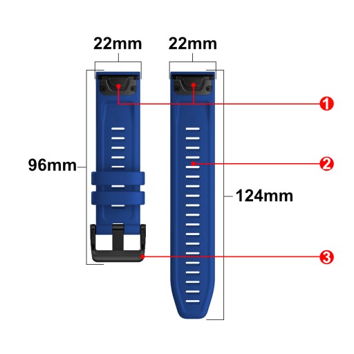 Silikonowy pasek QucikFit 22 mm do zegarków GARMIN - Szafirowy niebieski z czarnym skręcanym zapięciem