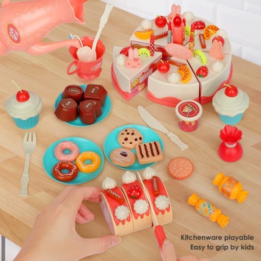 Przynieś radość i atmosferę święta do zabaw Twojego dziecka zestawem 82 elementów do krojenia tortu na urodziny. To idealny prezent, który wspiera twórczość i czyni zabawę wyjątkową.