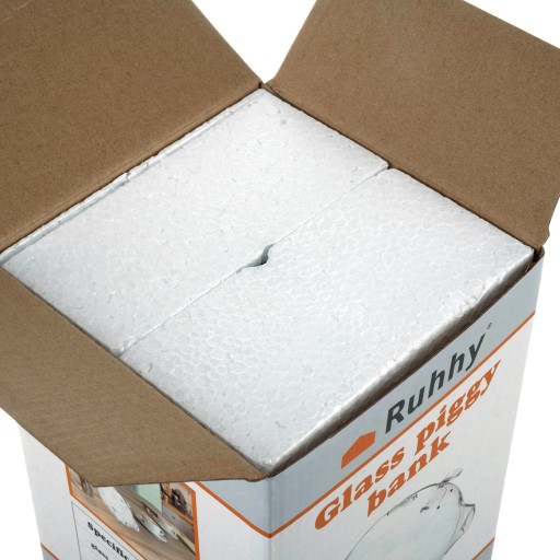 Całość jest zapakowana w karton. Dodatkowo skarbonka jest zabezpieczona styropianem co zapobiegnie stłuczeniu podczas transportu.