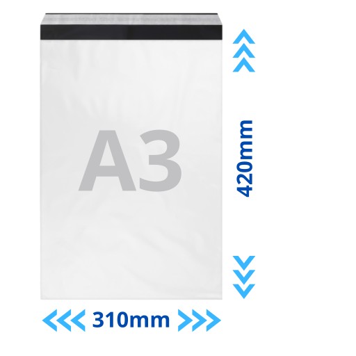 Foliopaki Koperty Kurierskie 310x420 A3 worek foliopak MOCNE białe 50 szt.